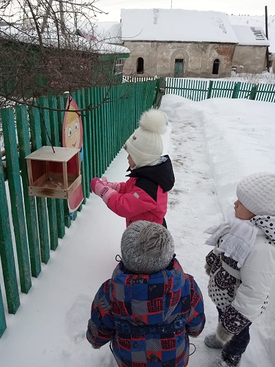 Зима – трудное время для птиц, особенно если она суровая и многоснежная. Голодная птица сильно страдает от холода. Нужно поддержать птиц зимой, сделать для них кормушки и не забывать подсыпать в них корм. Зимняя подкормка птиц – довольно старая традиция. Подкормка зимующих птиц приносит пользу не только пернатым, но и в обучении и воспитании детей. Дети через беседы, познавательные занятия и наблюдения узнают о различных видах птиц своей местности, узнают характерные особенности внешнего вида, поведения, учатся заботиться о птицах, испытывают радость от осознания того, что, делясь крохами, подкармливая птиц, можно спасти их от гибели. Дети охотно участвуют в организации и проведении подкормки зимующих птиц: изготавливают совместно с родителями кормушки, собирают корм и разрабатывают «птичье меню». В нашем детском саду стало уже традицией проведение акции «Покормите птиц зимой! », тем самым прививая детям, любовь ко всему живому.